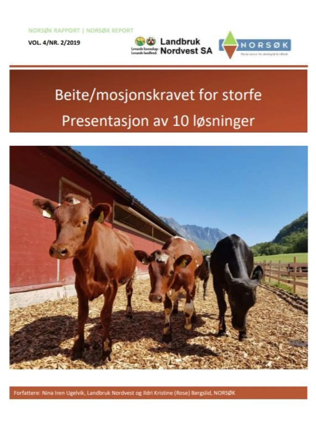 Ugelvik, N.I. & R. Bergslid 2019. Beite/mosjonskravet for storfe – Presentasjon av 10 løsninger.NORSØK Rapport nr. 2, 2019