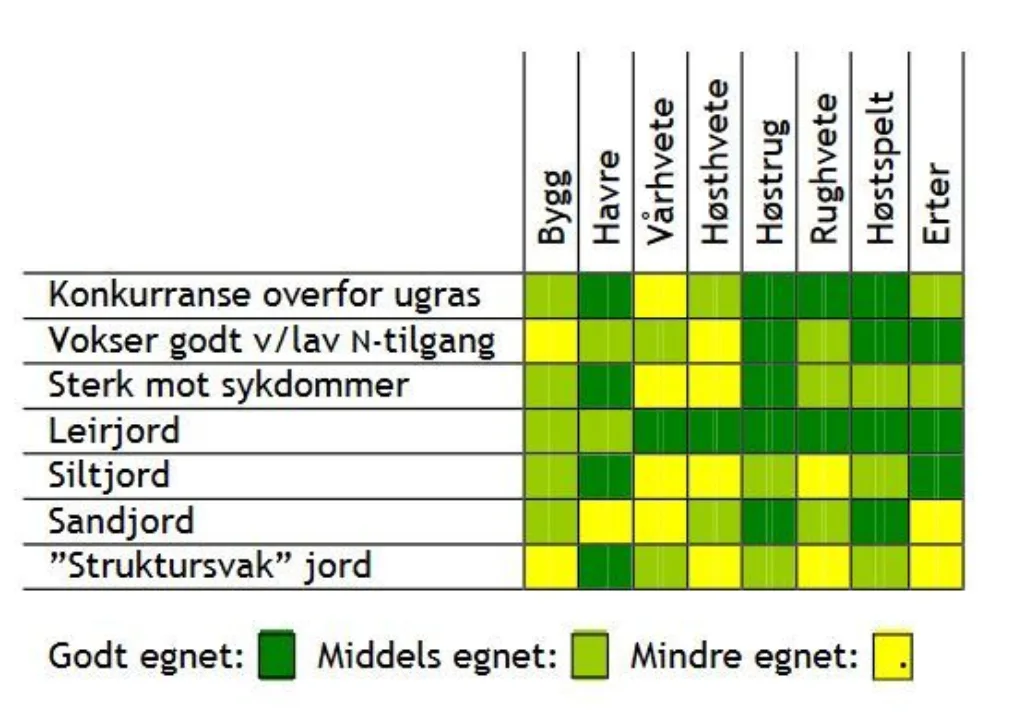 Teksten bygger på Bioforsk Tema Vol.1 Nr. 36/ 2006, utarbeidet av NORSØK, ØKOKORN Oslo og Akershus/Forsøksringene i Akershus, Buskerud forsøksring og Norges Vel.