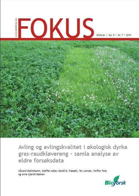 Steinshamn, H., S. Adler, R. B. Frøseth, T. Lunnan, T. Torp & A. K. Bakken 2014. Avling og avlingskvalitet i økologisk dyrka gras-raudkløvereng – samla analyse av eldre forsøksdata. Bioforsk Fokus nr. 7, 2014