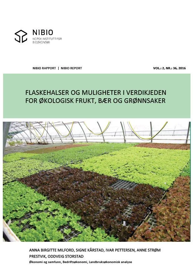 Milford, A.B. m.fl. 2016. Flaskehalser og muligheter i verdikjeden for økologisk frukt, bær og grønnsaker. NIBIO Rapport 2 (36)