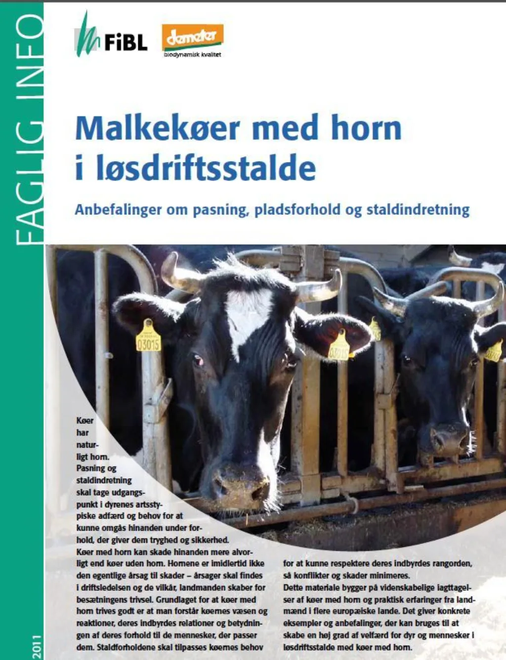 Schneider, C. m.fl. 2011. Malkekøer med horn i løsdriftsstalde. Faglig Info FiBL & Demeter. Dansk utgave: Foreningen for Biodynamisk jordbrug.