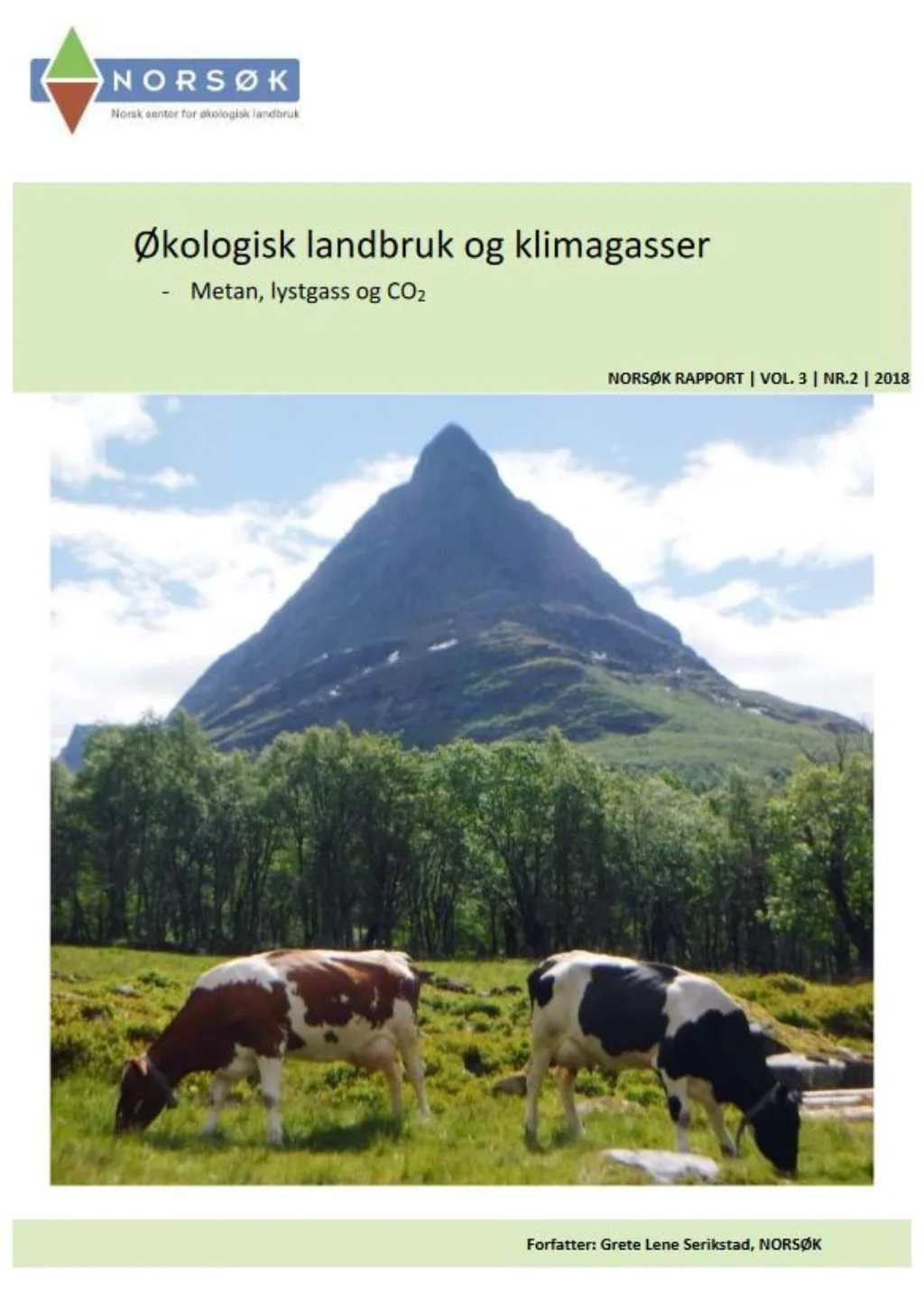 Serikstad, G.L. 2018. Økologisk landbruk og klimagasser – Metan, lystgass og CO2.NORSØK Rapport nr. 2, 2018.